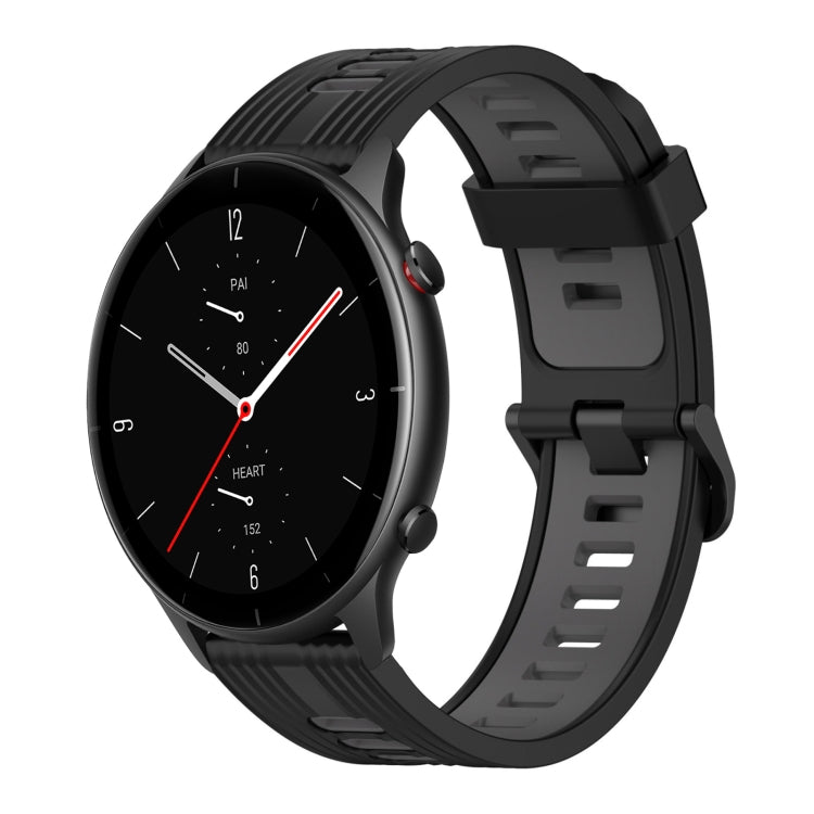Correa de Silicona para Amazfit GTR 2E 22mm Patrón Vertical Dos Colores (Negro + Gris)
