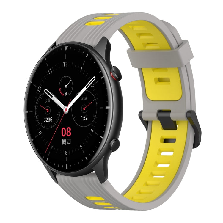 Correa de Silicona para Amazfit GTR 47mm 22mm Patrón Vertical Dos Colores (Gris + Amarillo)