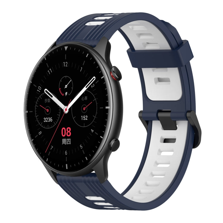Correa de Silicona para Amazfit GTR 47mm 22mm Patrón Vertical Dos Colores (Azul Oscuro + Blanco)
