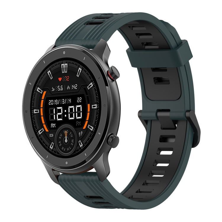 Correa de Silicona para Amazfit GTR 47mm 22mm Patrón Vertical Dos Colores (Verde Oliva + Negro)