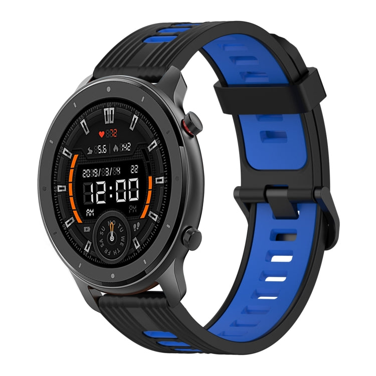 Correa de Silicona para Amazfit GTR 47mm 22mm Patrón Vertical Dos Colores (Negro + Azul)