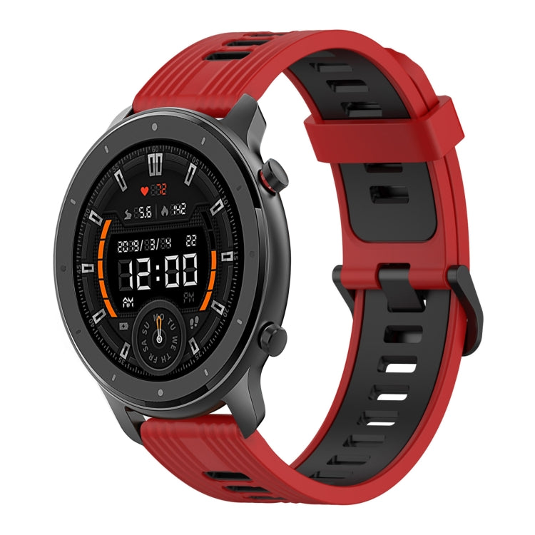 Correa de Silicona para Amazfit GTR 47mm 22mm Patrón Vertical Dos Colores (Rojo + Negro)