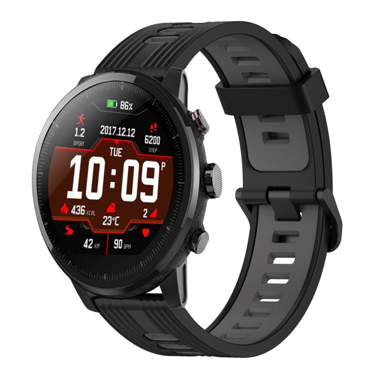 Correa de Silicona para Amazfit Stratos 22mm Patrón Vertical Dos Colores (Negro + Gris)