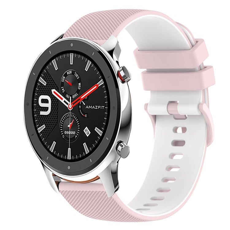 Correa de Reloj Amazfit GTR 42mm 20mm Silicona Dos Colores a Cuadros (Rosa + Blanco)