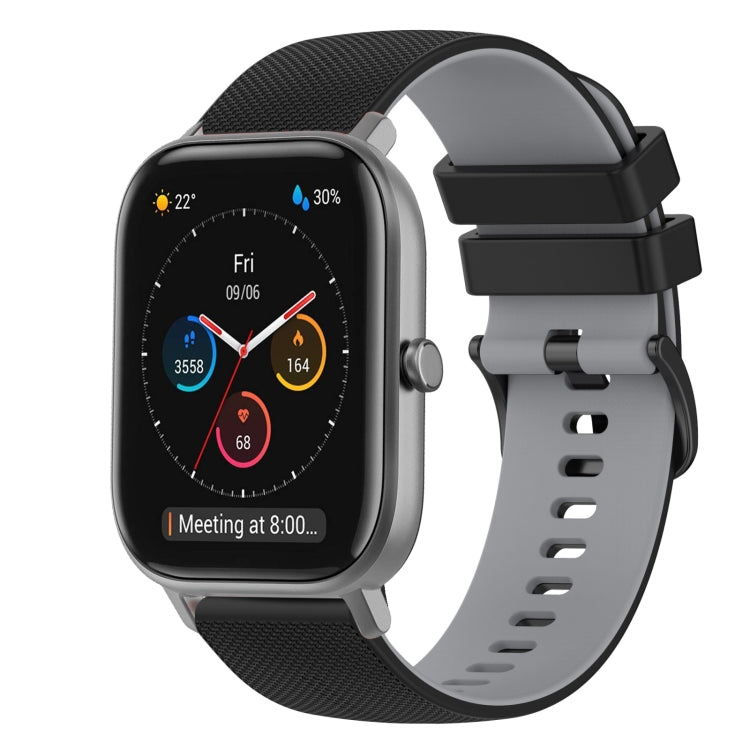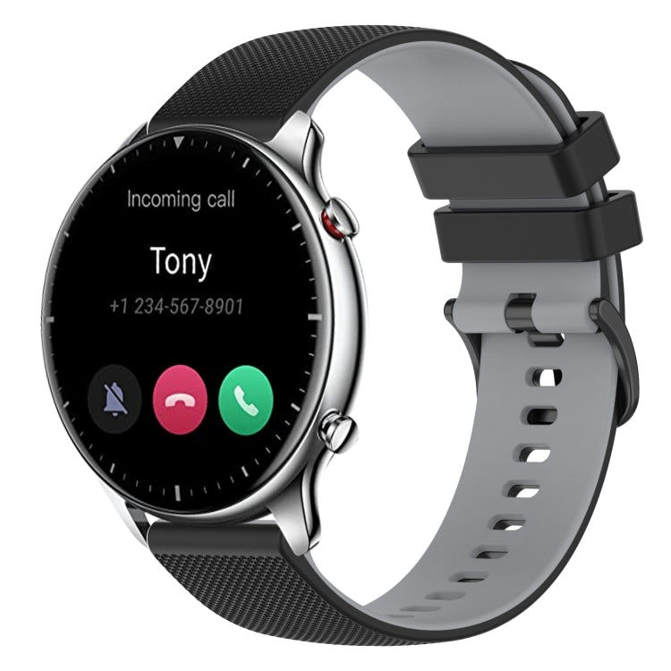 Para Amazfit Gts 2 Correa de Reloj de Silicona de Dos Colores a Cuadros de 20mm (Negro + Gris)