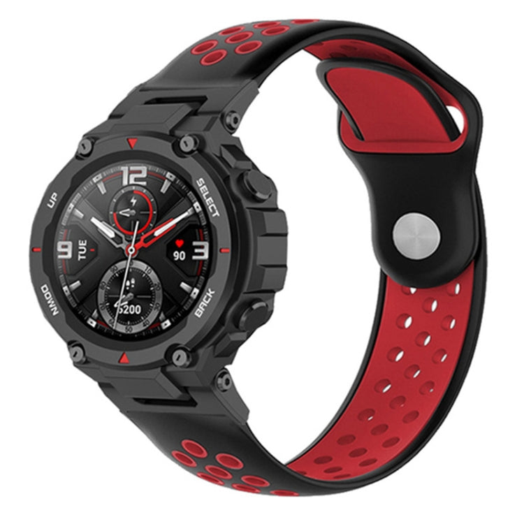 Correa de Reloj Silicona para Amazfit T-Rex 2 con Agujeros y Hebilla Inversa (Negro Rojo)