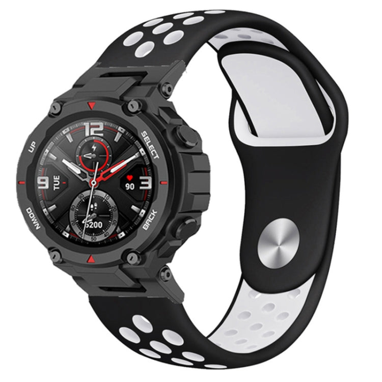 Correa de Reloj Silicona para Amazfit T-Rex 2 con Agujeros y Hebilla Inversa (Blanco y Negro)
