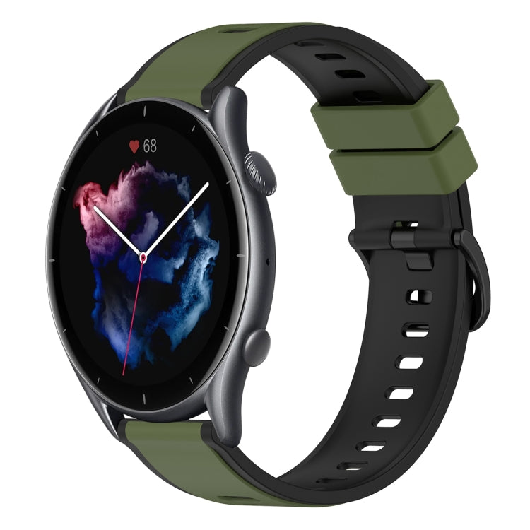 Correa de Reloj para Amazfit 3 22mm Silicona Dos Colores (Verde Militar + Negro)