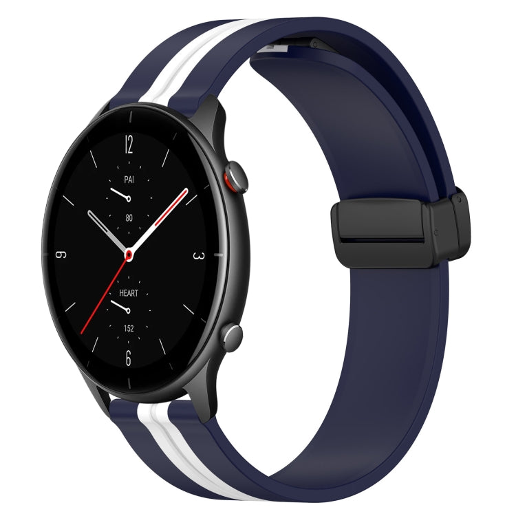 Correa de Reloj Amazfit GTR 2E 22mm Silicona Cierre Magnético Plegable (Azul Medianoche + Blanco)