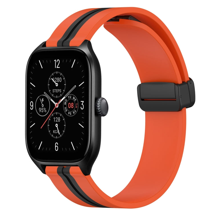 Correa de Reloj para Amazfit GTS 4 20mm Silicona con Cierre Magnético Plegable (Naranja + Negro)