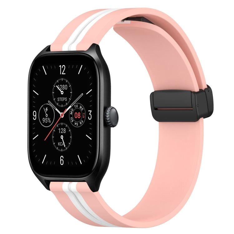 Correa de Reloj Amazfit Pop Pro 20mm Silicona con Cierre Magnético Plegable (Rosa + Blanco)