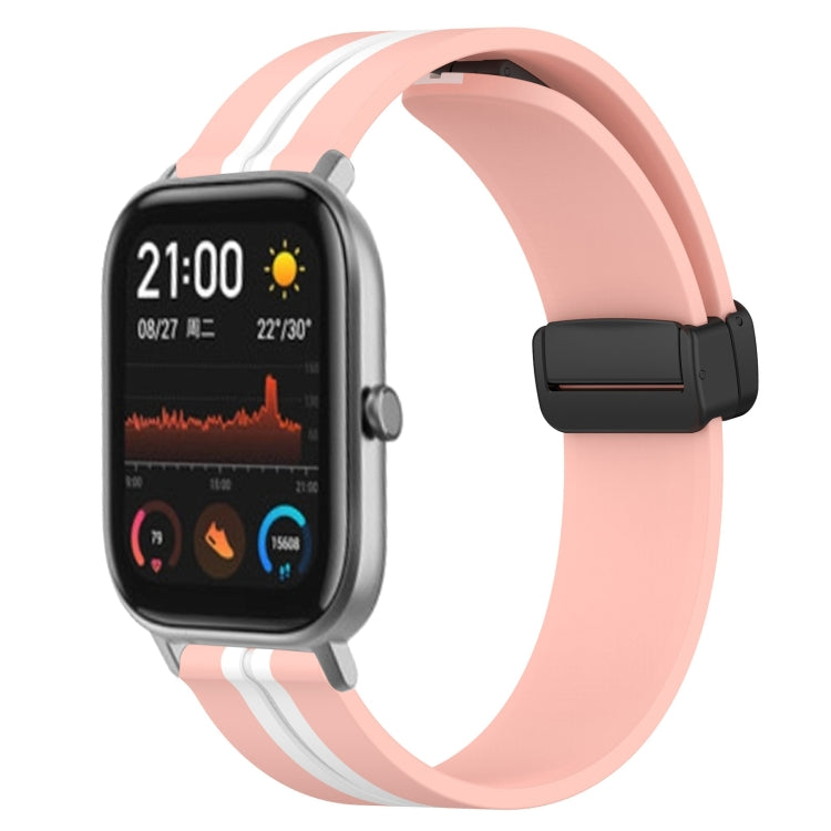 Correa de Reloj para Amazfit GTS 20mm Silicona con Cierre Magnético Plegable (Rosa + Blanco)