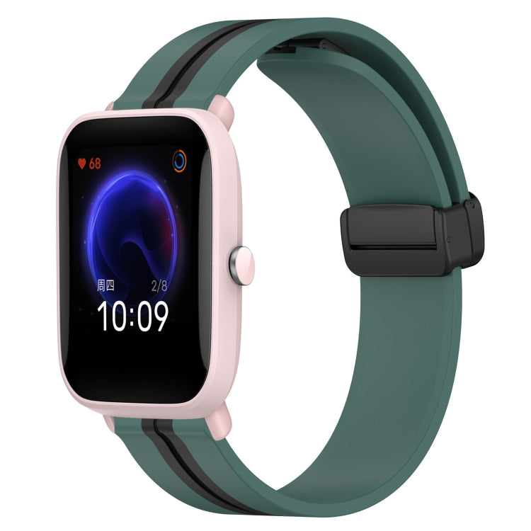 Correa de Reloj para Amazfit Pop 20mm Silicona con Cierre Magnético Plegable (Verde Oliva + Negro)