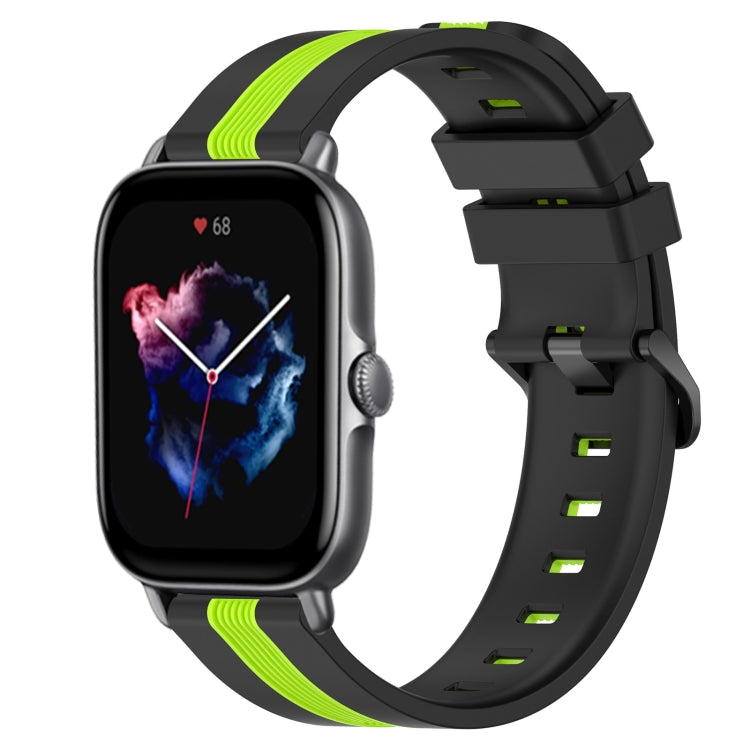 Correa de Reloj para Amazfit GTS 3 20mm Silicona Dos Colores Vertical (Negro + Verde Lima)