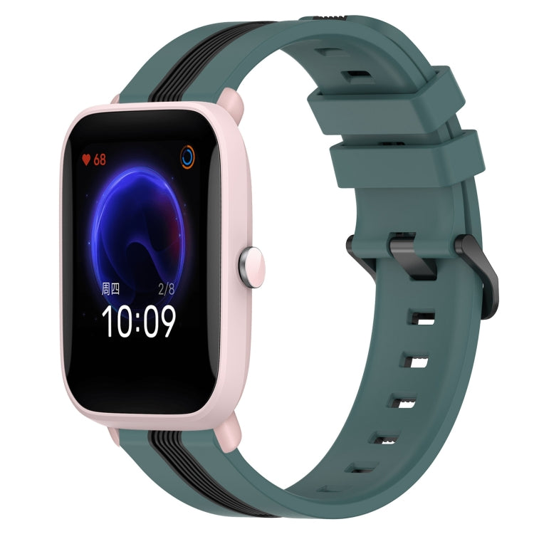 Correa de Reloj Amazfit Pop Pro 20mm Silicona Bicolor Vertical (Verde + Negro)
