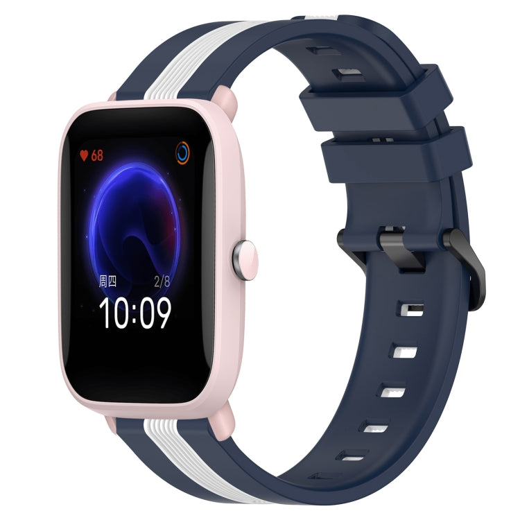 Correa de Reloj para Amazfit Pop 20mm Silicona Dos Colores Vertical (Azul + Blanco)