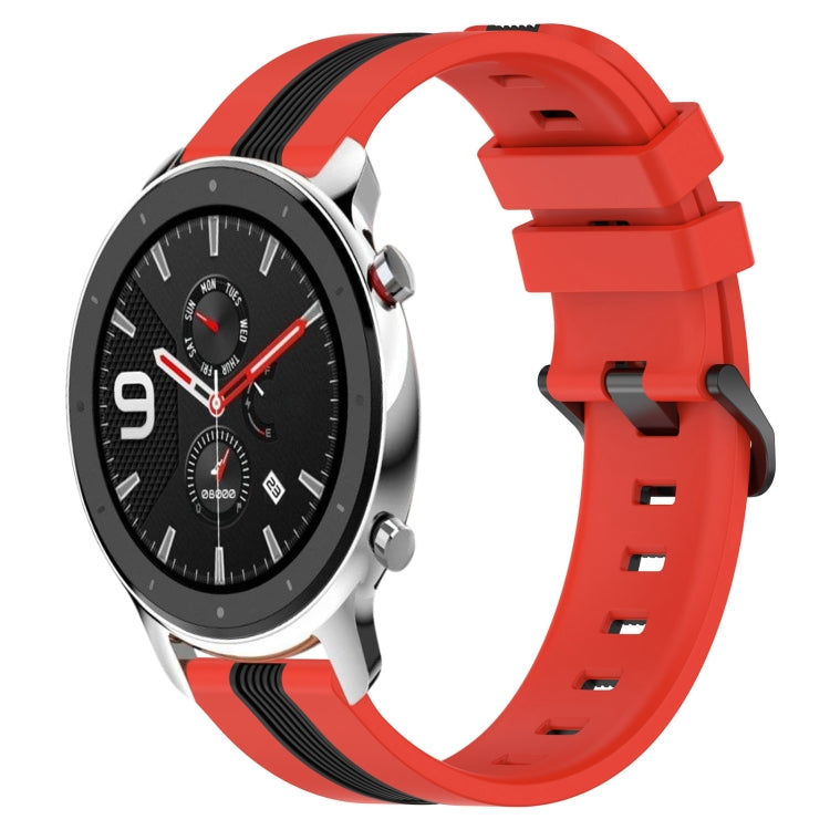 Correa de Silicona para Amazfit GTR 42mm 20mm Dos Colores Vertical (Rojo + Negro)