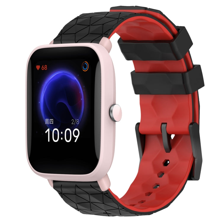 Banda de Reloj Amazfit Pop Pro 20mm Silicona Textura de Fútbol Dos Colores (Negro + Rojo)