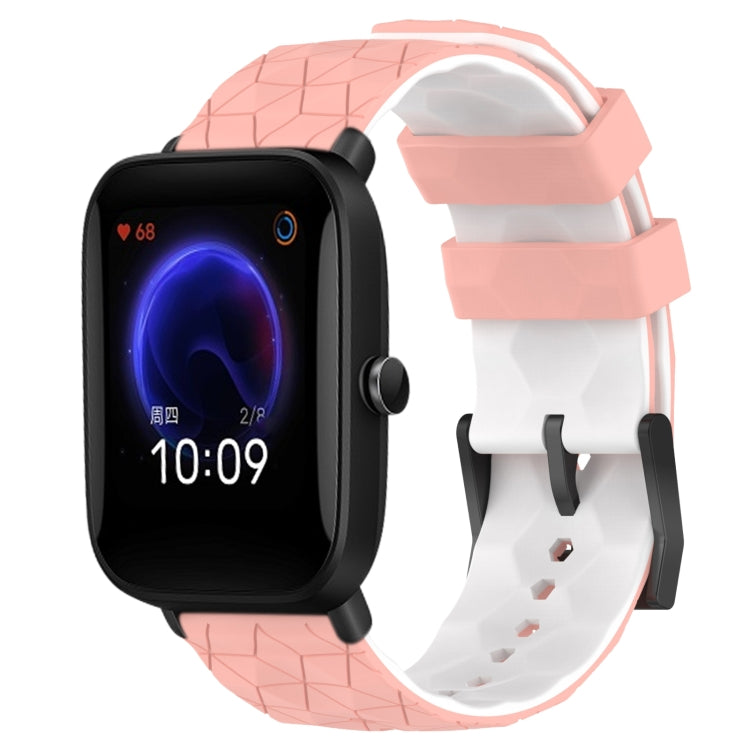 Banda de Reloj para Amazfit Pop 20mm Textura de Fútbol Silicona Dos Colores (Rosa + Blanco)