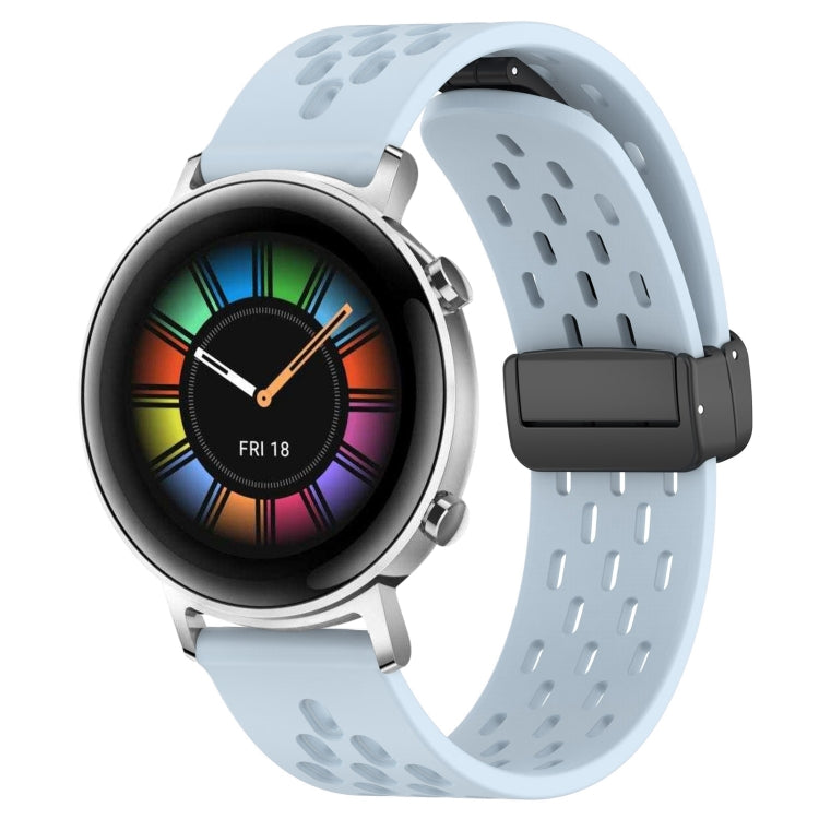 Correa de Silicona para Huawei Watch GT2 42mm 20mm con Cierre Magnético Plegable (Azul Claro)
