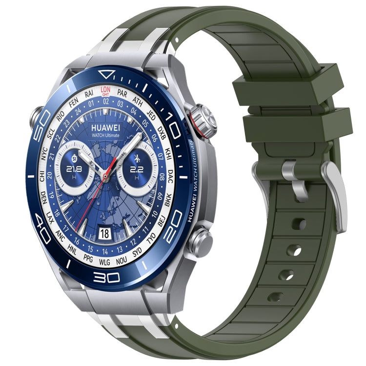 Correa de Silicona Huawei Watch Ultimate 22mm con Hebilla Plateada y Liberación Rápida (Verde Oliva)