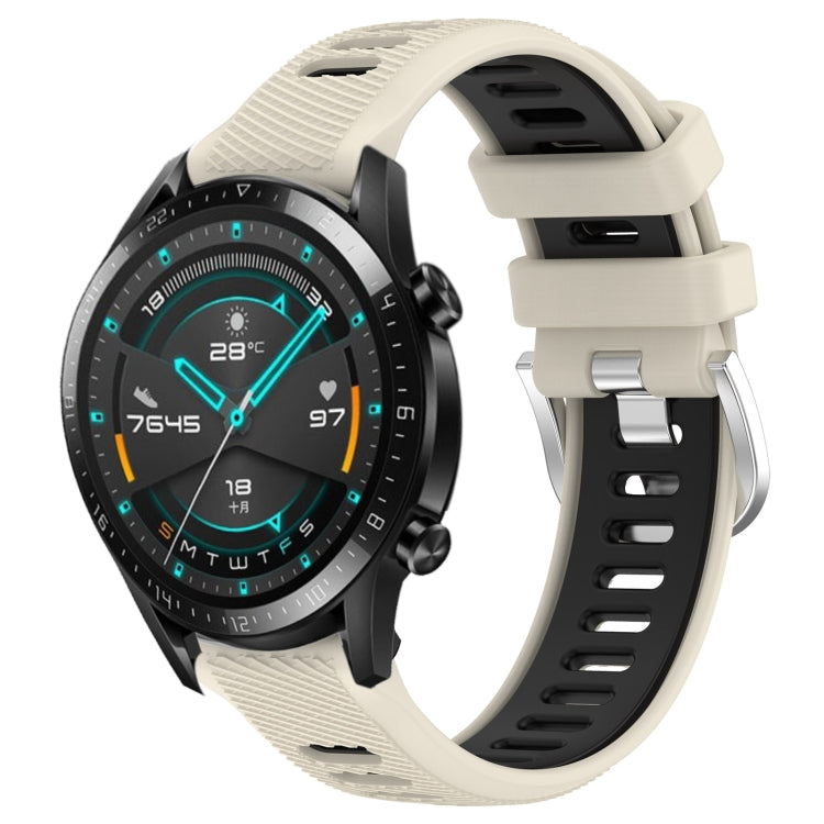 Correa de Silicona para Huawei Watch GT2 42mm 20mm Deportes con Hebilla de Acero (Starlight + Black)