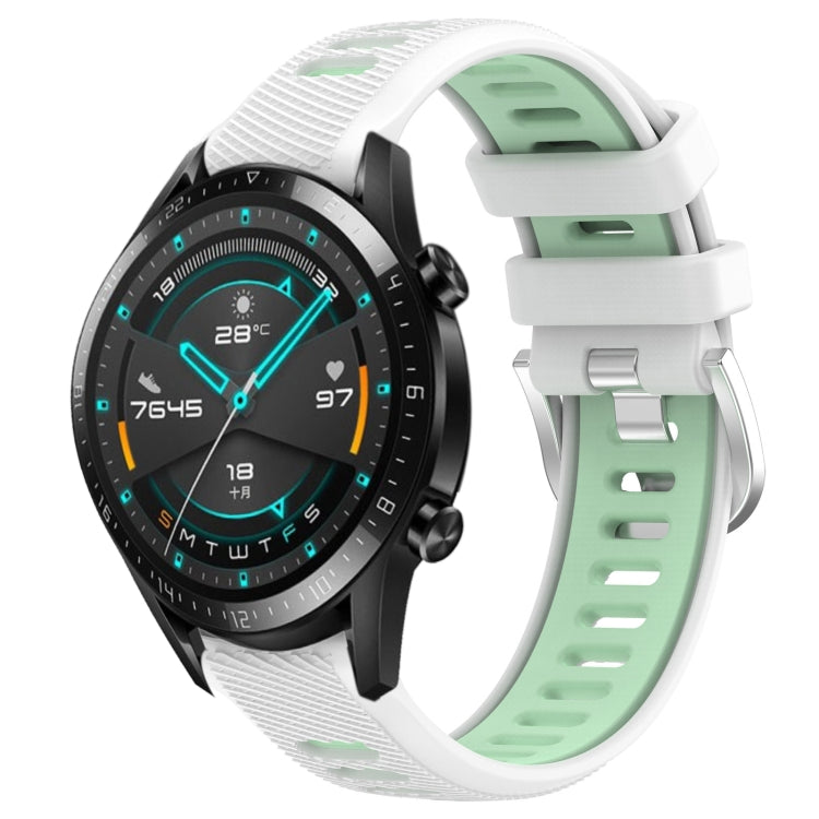 Correa de Silicona para Huawei GT2 46mm 22mm Deportes con Hebilla de Acero (Blanco + Verde Azulado)