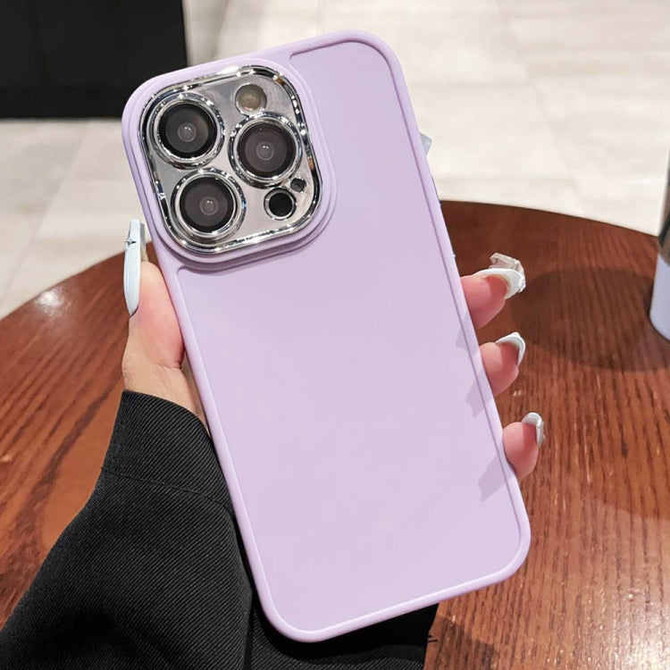 Caja de teléfono iPhone 12 Pro Max con marco de Lente galvanizada y Película de Lente (Púrpura Claro)