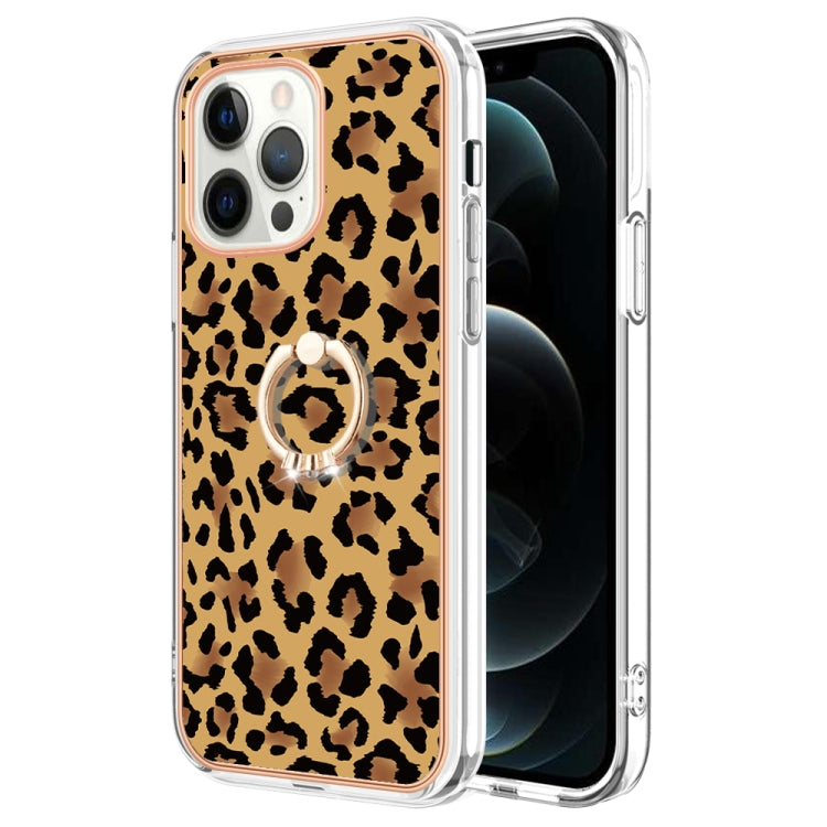 Funda para iPhone 12 Pro Max Galvanoplastia IMD Doble Cara con Soporte Anillo (Estampado de Leopardo)