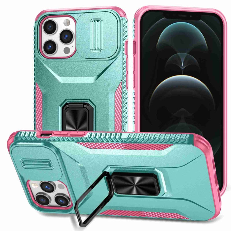 Estuche para Teléfono iPhone 12 Pro Max con Soporte Deslizante para Levas (Rosa + Gris Verde)