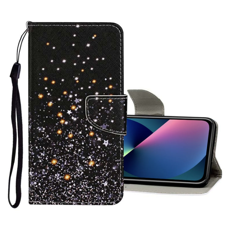 Funda de Cuero para iPhone 13 Mini con Tapa y Patrón de Dibujo Coloreado (Estrella de Cinco Puntas)