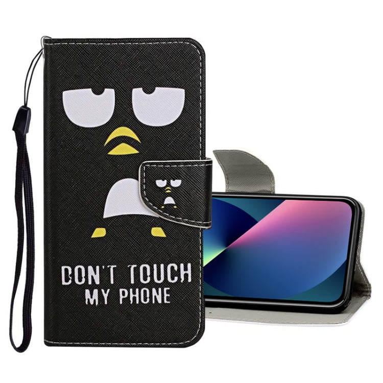 Funda de Cuero con Tapa para iPhone 13 Mini con Patrón Dibujo a Color (Pingüino)