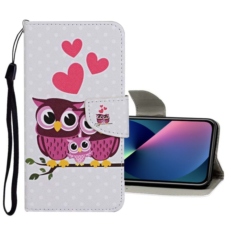 Funda de Cuero para iPhone 13 Mini con Tapa y Patrón de Dibujo a Color (Familia de Búhos)
