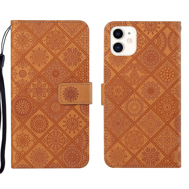 Estuche para Teléfono iPhone 13 Mini Cuero Patrón En Relieve Estilo Étnico (Marrón)