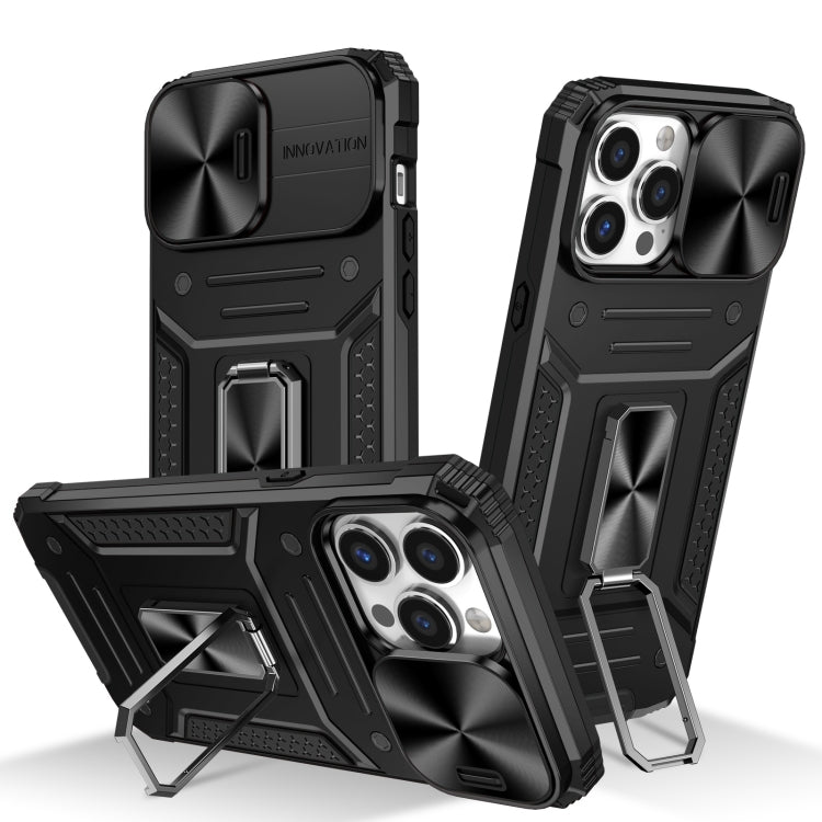 Estuche para Teléfono iPhone 13 Pro Sliding Camshield TPU + PC Prueba de Golpes con Soporte (Negro)