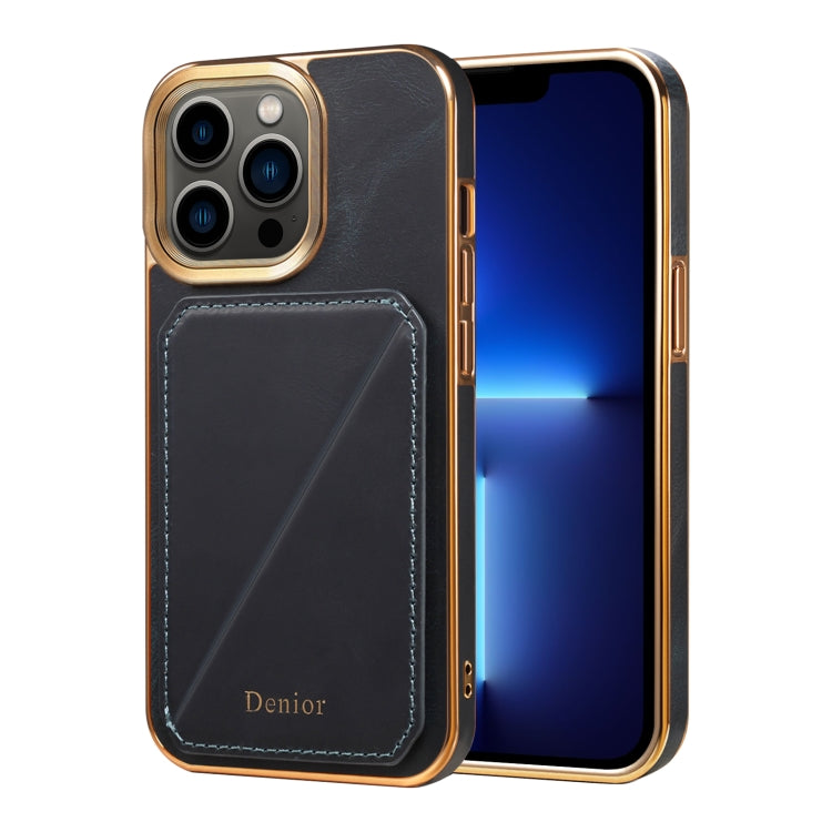 Funda para Teléfono Denior Oil Wax Leather iPhone 13 Pro Galvanoplastia Ranura para Tarjeta (Marrón)