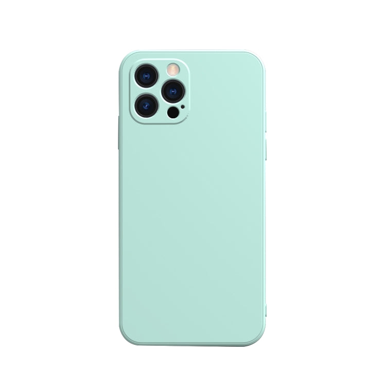 Funda para iPhone 13 Pro Franela con Forro de Silicona Líquida Borde Recto Cubo (Cian)