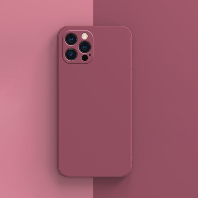 Funda para iPhone 13 Pro Franela con Forro de Silicona Líquida Borde Recto Cubo Color Sólido (Rojo)