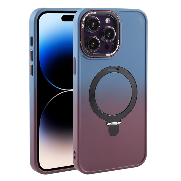 Funda para Teléfono iPhone 14 Pro Max con Soporte Magsafe Gradiente de Silicona Líquida (Azul Morado)