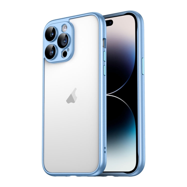 Marco de Borde Puro para iPhone 14 Pro Max Macaron con Película de Vidrio para Lentes (Azul)