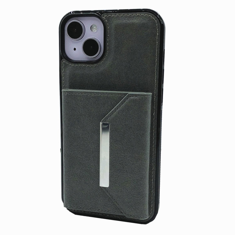 Funda para Teléfono iPhone 15 Plus con Bolsa y Ranuras para Tarjetas con Hebilla de Metal (Gris)