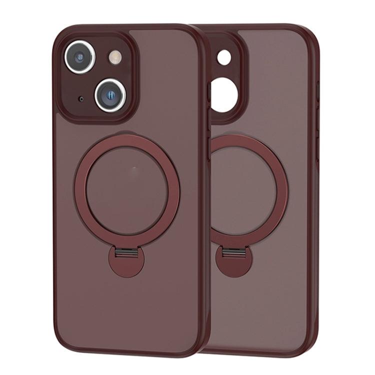 Funda para iPhone 15 Plus Skin Feel Ring Holder Wallet Magnética (Marrón)