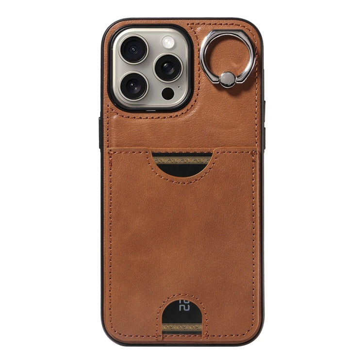 Funda para Teléfono iPhone 15 Pro Max con Soporte para Anillo y Ranura para Tarjeta (Marrón)