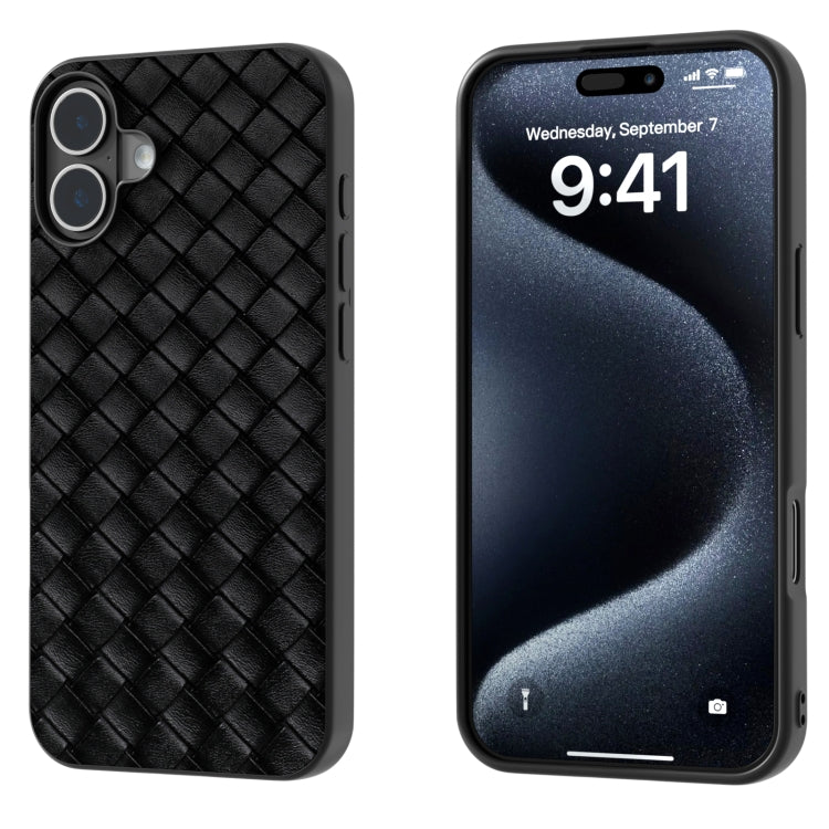 Funda de Teléfono Pu Textura Tejida con Marco para iPhone 16 Plus (Negro)
