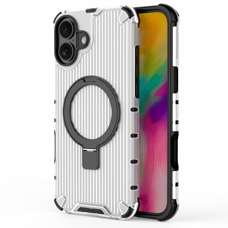 Funda para Teléfono iPhone 16 Plus Soporte Rejilla a Prueba de Golpes (Transparente)