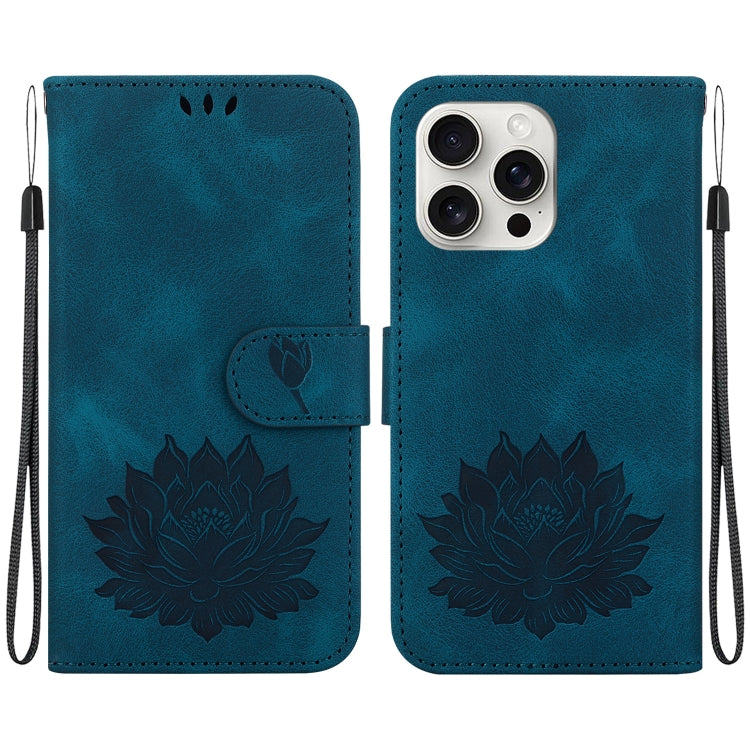 Funda para iPhone 16 Pro Max Cuero con Relieve de Loto (Azul Oscuro)