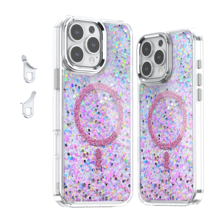 Funda de Teléfono TPU Magnética Magsafe con Purpurina Epoxi para iPhone 16 Pro Max (Rosa)