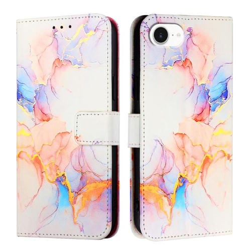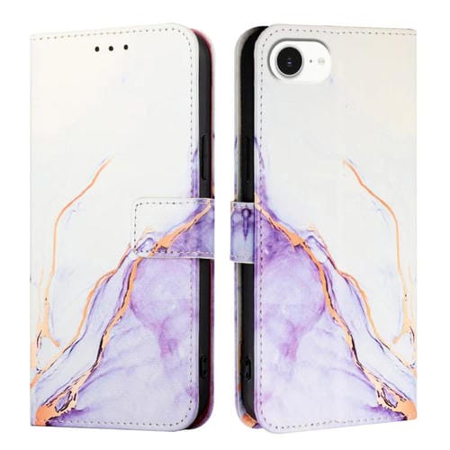 Funda de Cuero con Tapa y Diseño de Mármol Pt003 para iPhone 16E (Blanco y Morado)