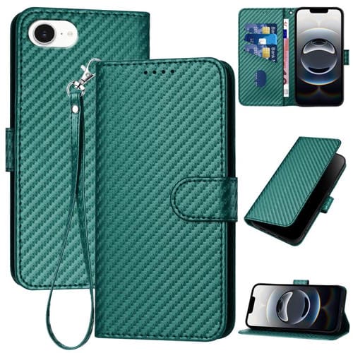 Funda de Cuero para iPhone 16E Yx0070 con Hebilla de Fibra de Carbono y Cordón (Verde Oscuro)