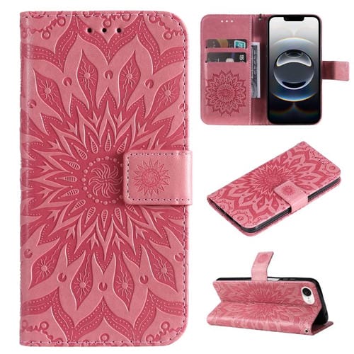 Funda de Cuero con Tapa para iPhone 16E Estampado Girasoles En Relieve (Rosa)